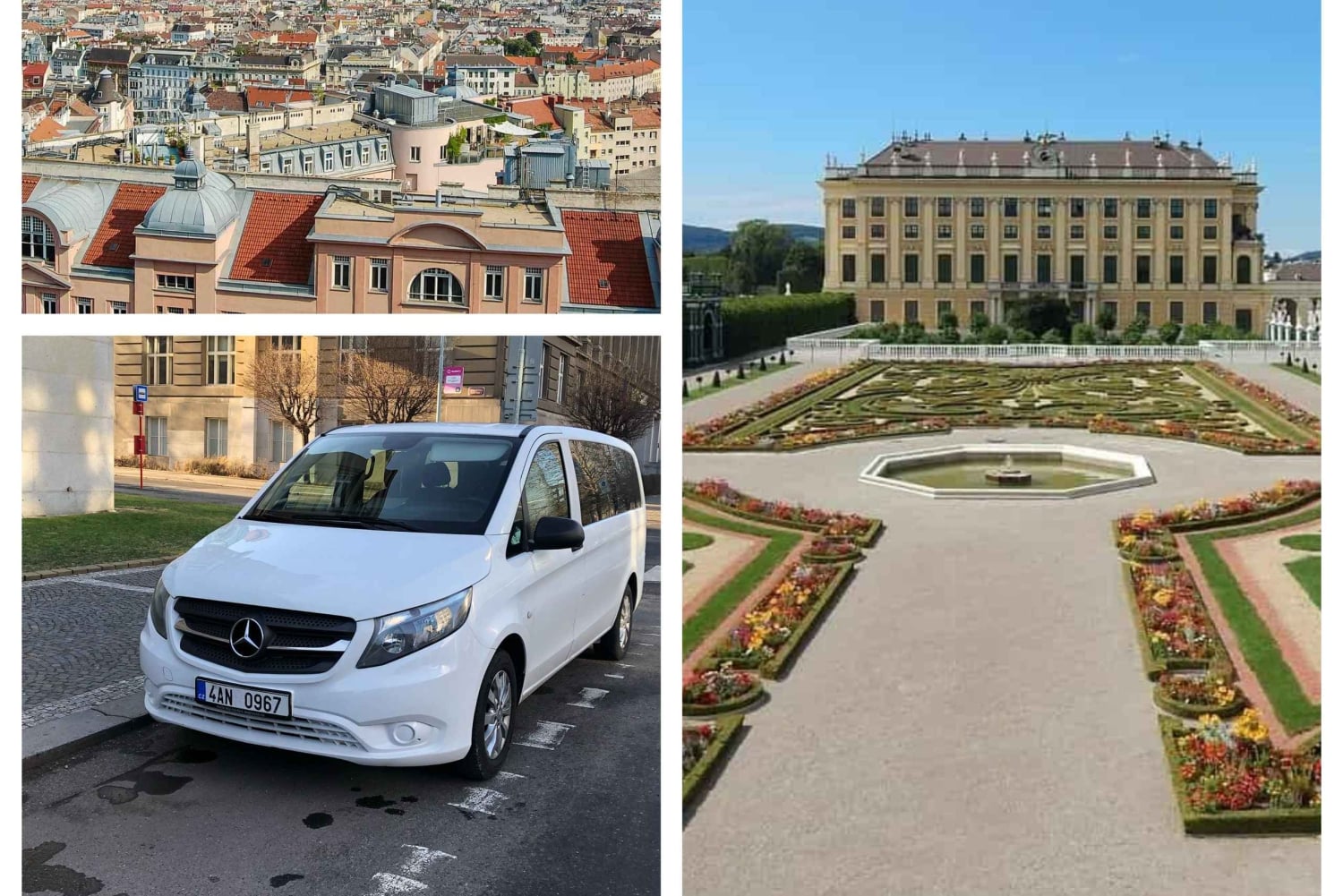 Join us for an unforgettable day trip from Prague to Vienna, with a comfortable journey back to Prague. The minivan can take up to 7 passengers. Here's what to expect: Your dedicated driver will collect you from any location in Prague, be it your hotel or a bus station, and transport you to Vienna, the capital of Austria. Upon arrival, you'll have a generous 4-hour window to leisurely explore the city at your own pace. Once your exploration is complete, our driver will be ready to pick you up from any designated spot in Vienna and safely chauffeur you back to Prague. Specific pick-up details will be arranged upon your arrival in the city, ensuring a seamless return journey. P.S. It is not a guided tour.Includes